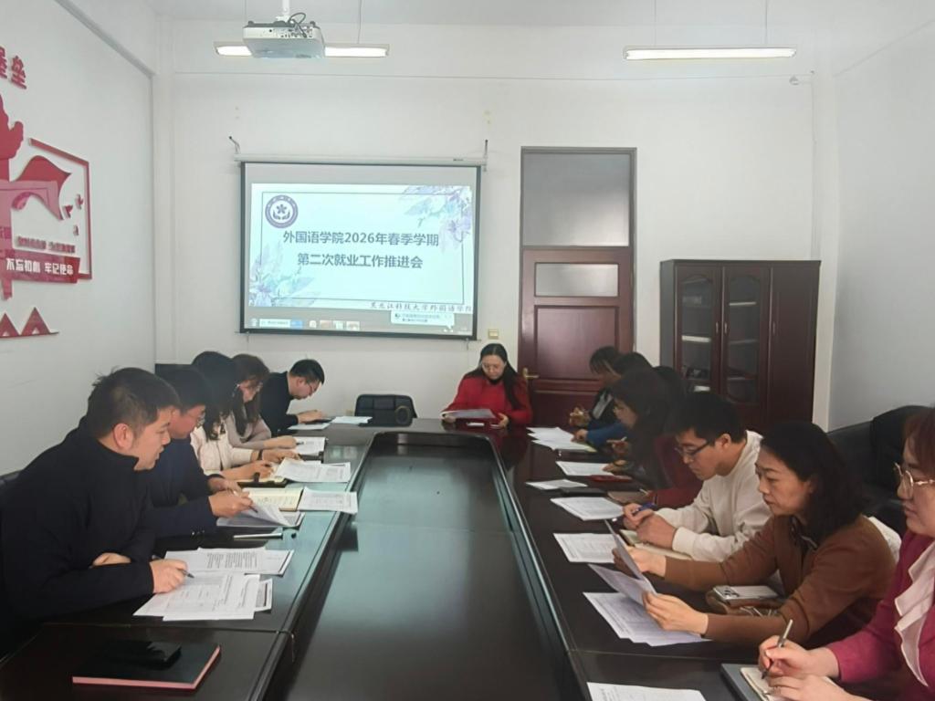 为扎实推进毕业生就业工作,奋力提升就业育人质效,3月27日下午,外国语学院在科厦921会议室,分专业召开2026届毕业生就业工作推进会。学院领导班子成员、各专业教师及全体辅导员参加会议。