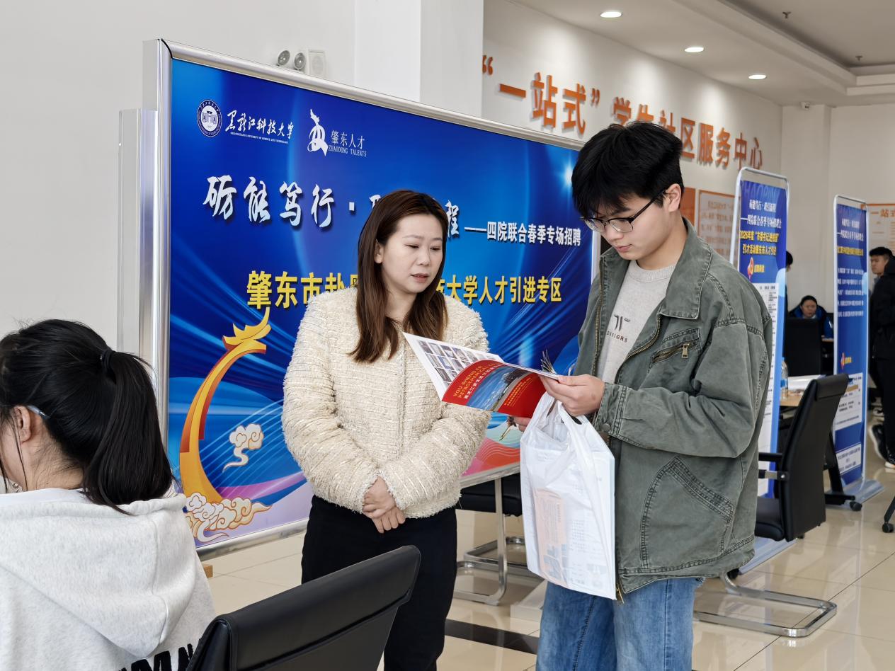 为创新服务形式、拓展就业空间,本次招聘会特别设立两大特色功能专区:其一为“肇东市人才引进专区”,邀请肇东市北方人力资源有限公司等6家重点企业进行现场招聘,并同步开展2026年度肇东市“市委书记进校园”引才活动,肇东市委组织部相关负责人亲临展区,为毕业生细致解读当地人才引进政策、安家补贴及成长支持措施,吸引了大量毕业生驻足咨询;其二为“网络双选专区”,依托腾讯会议平台,为因地域限制无法到场的省外优质企业提供线上实时对接服务,毕业生可通过视频连线与企业HR进行“云面试”,达成意向后即可进入专属签约服务群,实现签约流程的线上高效办理。