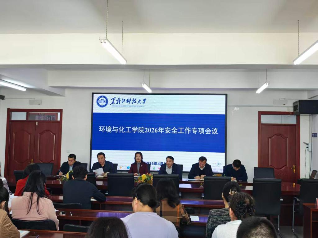 为全面贯彻落实学校2026年安全工作会议暨安委会第一次(扩大)会议精神,4月2日上午,环境与化工学院在学院报告厅召开2026年安全工作会议。学院院长熊楚安主持会议,学院领导班子成员、系主任、学工办、综合办主任、实验室主任、硕士生导师代表、全体实验员及承担本科生实验教学任务的教师参会。