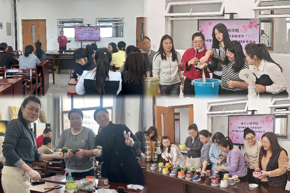 安全工程学院工会组织开展了“春风暖巾帼 巧手绘芳华”活动。一盆盆形态可爱的多肉植物,在大家精心搭配、栽种与铺面后,成为独具匠心的绿意盆栽;一把把素白的扇面,在颜料与画笔的点缀下,勾勒出清新雅致的图案,化作兼具美观与实用性的创意漆扇。