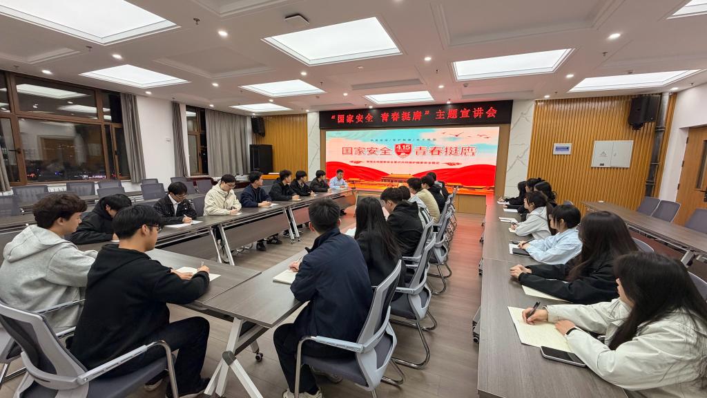 聚焦理论学习、主题宣讲、仪式教育,强化思想引领,夯实国家安全思想根基。学工部(处)、保卫处、校团委主办,马克思主义学院承办“国家安全、青春挺膺”主题升旗仪式,以庄严仪式引导青年牢记国家安全责任、树立国家安全理念、强化使命担当,厚植家国情怀与安全意识;安全学院团委围绕总体国家安全观核心要义开展宣讲,剖析危害国家安全的行为与后果,帮助学生清晰识别安全风险、严守安全底线;环化学院师生共同研读《没有硝烟的战争:中国国家安全的忧思与对策》,在交流研讨中深化思想共识,推动总体国家安全观入脑入心;马克思主义学院团委组织观看校园火灾警示教育片《解密》,直观提升校园消防安全警惕性与应急防范意识;机械、经济、外国语、研究生学院团委组织学习校园消防安全管理规定,结合法规条款与典型案例强化安全意识,引导青年坚定理想信念、强化使命担当,筑牢维护国家安全的思想根基。