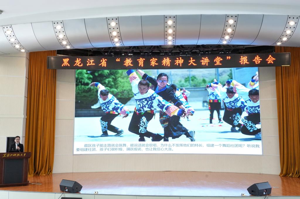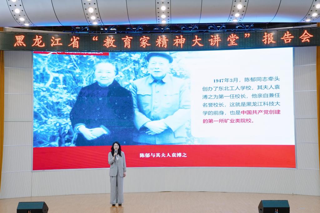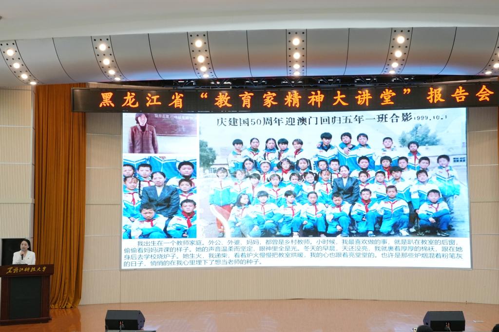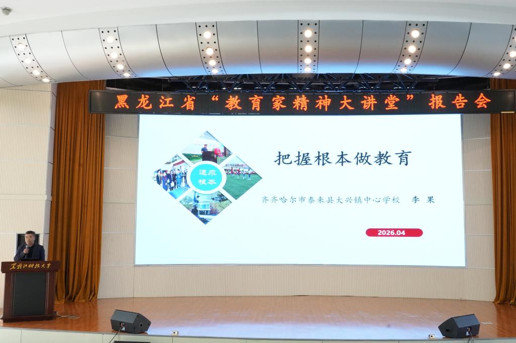 4月22日,黑龙江省“教育家精神大讲堂”第六场报告会在我校举办。黑龙江省教育厅党组成员、副厅长曹叠峰出席活动并讲话,校党委书记周宏力致辞。校党委常委、副校长谭旭红主持报告会。