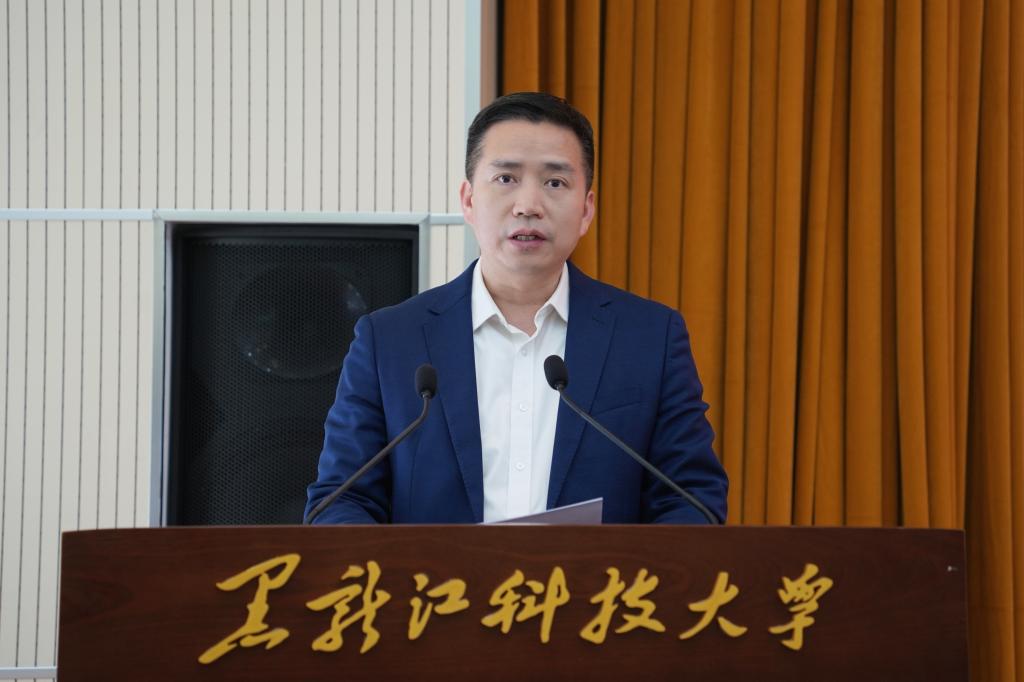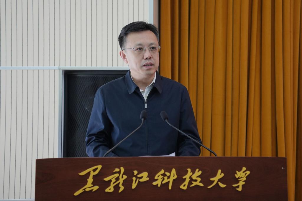 学校机关党委书记林松以《黑土铸魂 三脉相承——黑龙江科技大学“三种精神”的时代回响》为题,全面阐释了“陈郁精神、太阳石精神、劲牛精神”的科大精神内核,展现了“三种精神”引领下学校全面建设矿业特色鲜明的国内一流应用型大学的奋进之路。