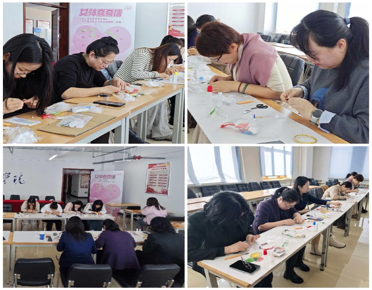 活动中,女教职工们可依托花卉、纹样、节日元素等简易模板创作,也能尽情发挥创意,自主设计独属于自己的珐琅作品。在一掐一点、一填一粘的手工创作中,舒缓日常工作的疲惫,锻炼动手能力与审美能力,在慢时光里感受传统工艺的独特魅力,发现创作之美、生活之美。同时,活动也为大家搭建起交流互动的暖心平台,让女教职工在互帮互助、分享交流中增进情谊,凝聚起学院发展的巾帼合力。