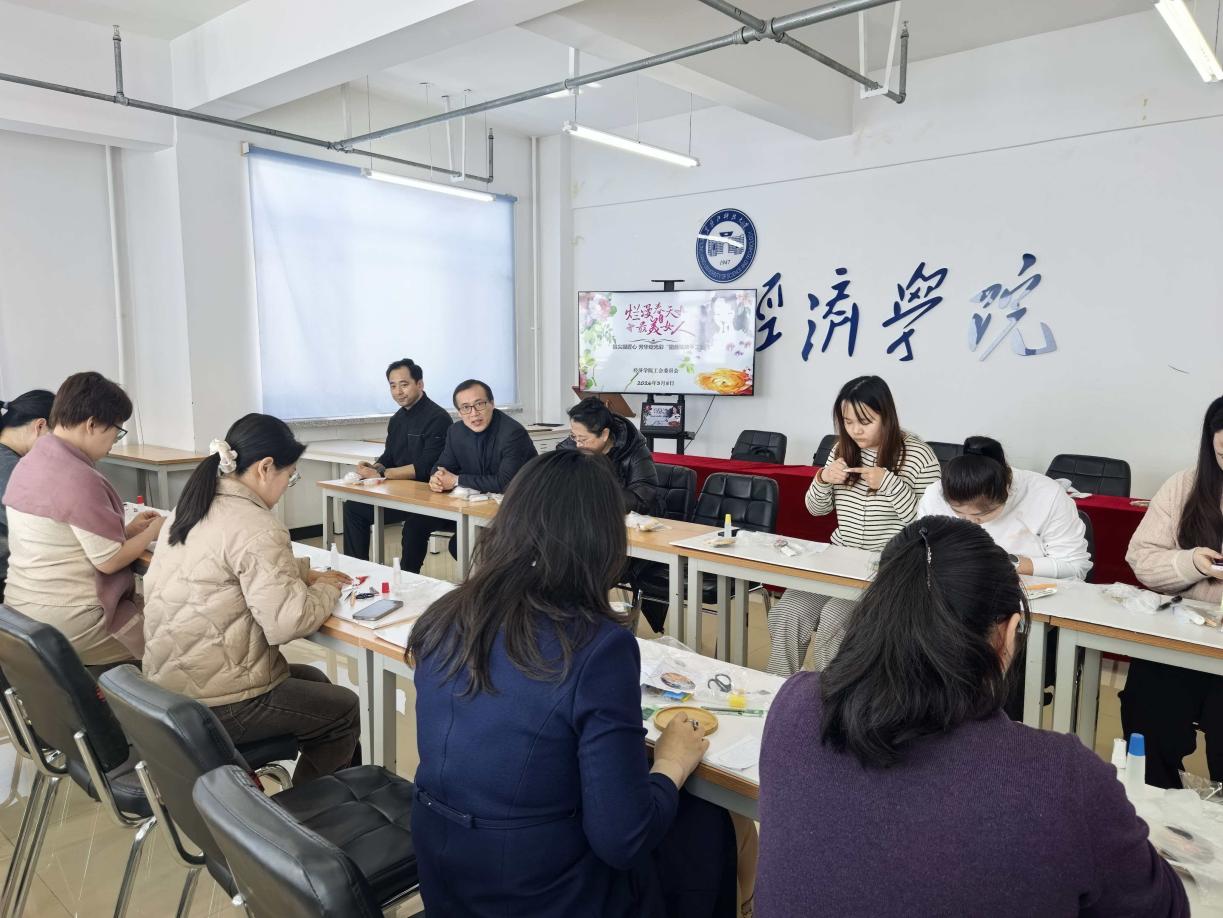 指尖传情,匠心铸美。从剪纸的巧思灵动到珐琅的匠心雅致,经济学院工会始终以暖心活动为载体,传递对女教职工的关怀与敬意,让每一位女性都能在体验传统文化、展现巧手风采的过程中,彰显新时代女教职工热爱生活、昂扬向上的精神风貌。此次掐丝珐琅手工制作活动,不仅是一场非遗文化的沉浸式体验,更是学院对全体女教职工的美好祝福,愿每一位女性都能在时光中绽放独特光彩,以更饱满的热情、更昂扬的姿态奔赴工作与生活,绽放巾帼芳华!