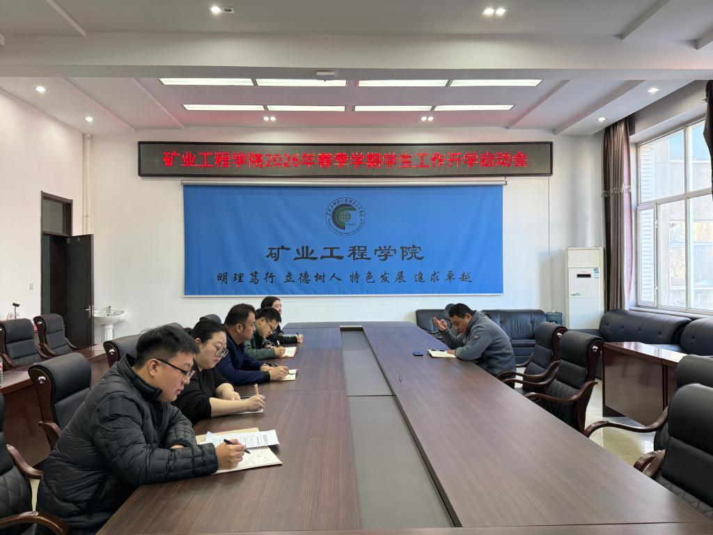 2月26日上午,矿业工程学院召开2026年春季学期学生工作开学启动会。会上,学院党委副书记李强安排布置了新学期开学启动相关工作,各辅导员围绕学风建设、班团建设、就业服务、心理护航等重点工作汇报了本学期的工作计划。