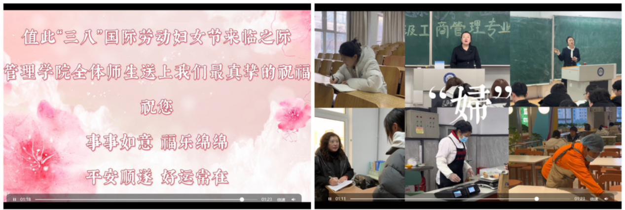 影绘谢忱,在师生共鸣中厚植教育温度。倾情制作“三八”国际劳动妇女节主题视频,生动勾勒出女性力量在不同岗位上默默奉献的点滴瞬间,赞美她们在平凡岗位上书写的不凡坚守。同时,管院学子以板报传情,以鞠躬致谢,不仅深刻真挚地向老师献上节日祝福,更让尊师重教的优良传统在校园里生根发芽。这一声声真切的问候、一份份质朴的敬礼,都将化作温暖的师生连接,让教育的温度在躬身之间悄然传递。