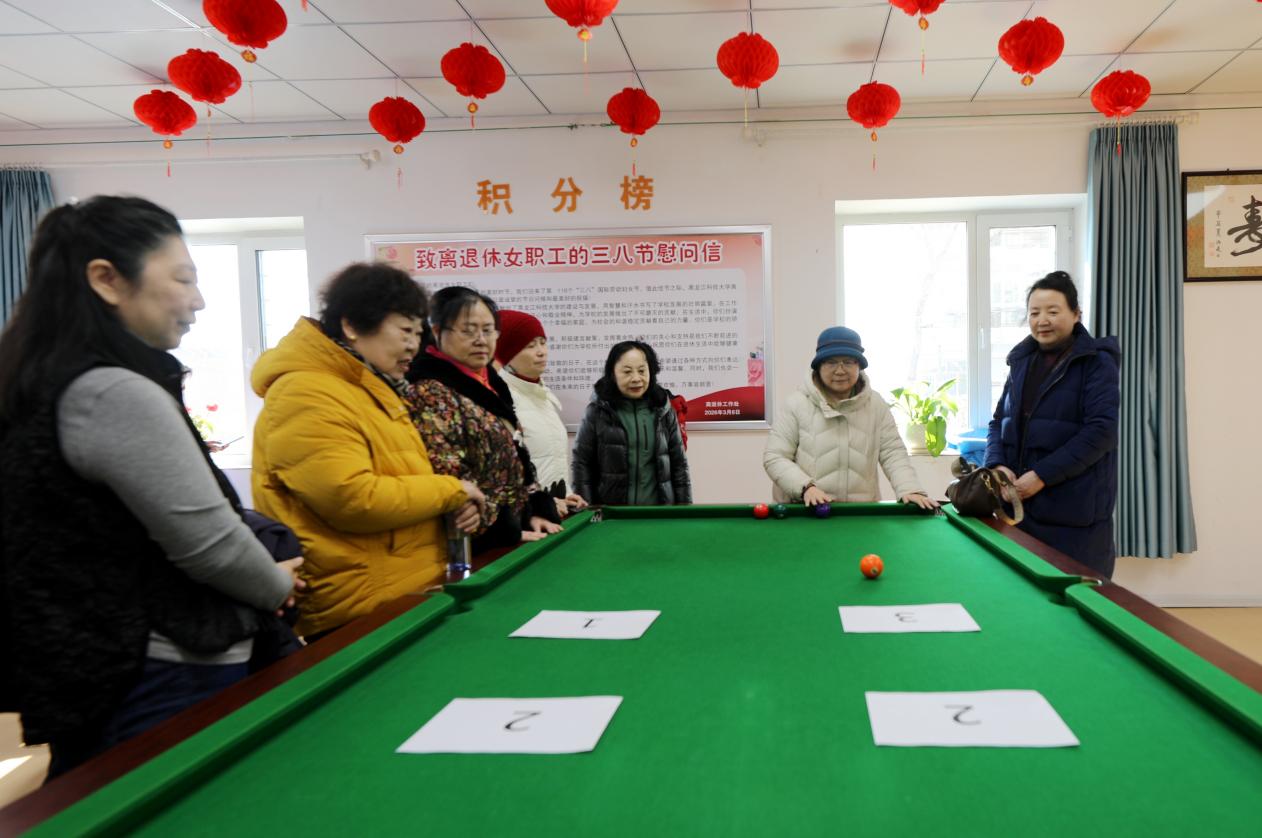 活动现场氛围热烈,眼疾手快、推台球、平衡球等多项趣味益智活动同步开展。老同志们精神饱满、踊跃参与,在轻松互动中舒展身心、畅叙情谊,尽显银龄巾帼优雅从容、乐观向上的风采。活动现场还为离退休女教职工送上了《致离退休女职工的三八节慰问信》,信中字字句句饱含着学校对老同志们的深切问候、节日祝福与崇高敬意。