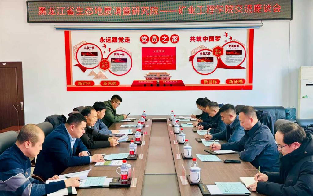 为深入贯彻教育、科技、人才一体化发展战略,推动党建与业务深度融合,搭建高校与科研院所协同创新平台,3月20日下午,矿业工程学院与黑龙江省生态地质调查研究院举行党建交流暨科研合作座谈会。矿业工程学院党委班子成员、骨干教师代表,黑龙江省生态地质调查研究院党委班子成员、相关业务部门负责人参加座谈。双方围绕党建共建、学科建设、人才培养、科研攻关、成果转化等议题深入交流,达成多项合作共识。
