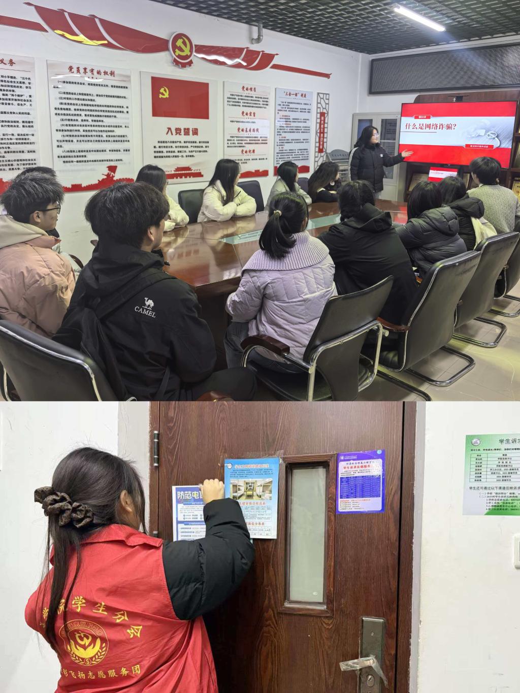筑牢反诈防线,共建平安校园。3月13日、17日,经济学院学生会组织开展“筑牢反诈防线,共建平安校园”防诈宣传志愿服务活动。志愿者们深入学生公寓设立宣传点,聚焦刷单返利、冒充客服、虚假中奖等校园高发诈骗类型,通过案例讲解、现场答疑等方式普及防范技巧,提醒同学们牢记“不听、不信、不转账”,遇到可疑情况及时向老师求助。此次活动有效提升了学生的反诈意识和自我保护能力,为建设平安校园贡献青春力量。