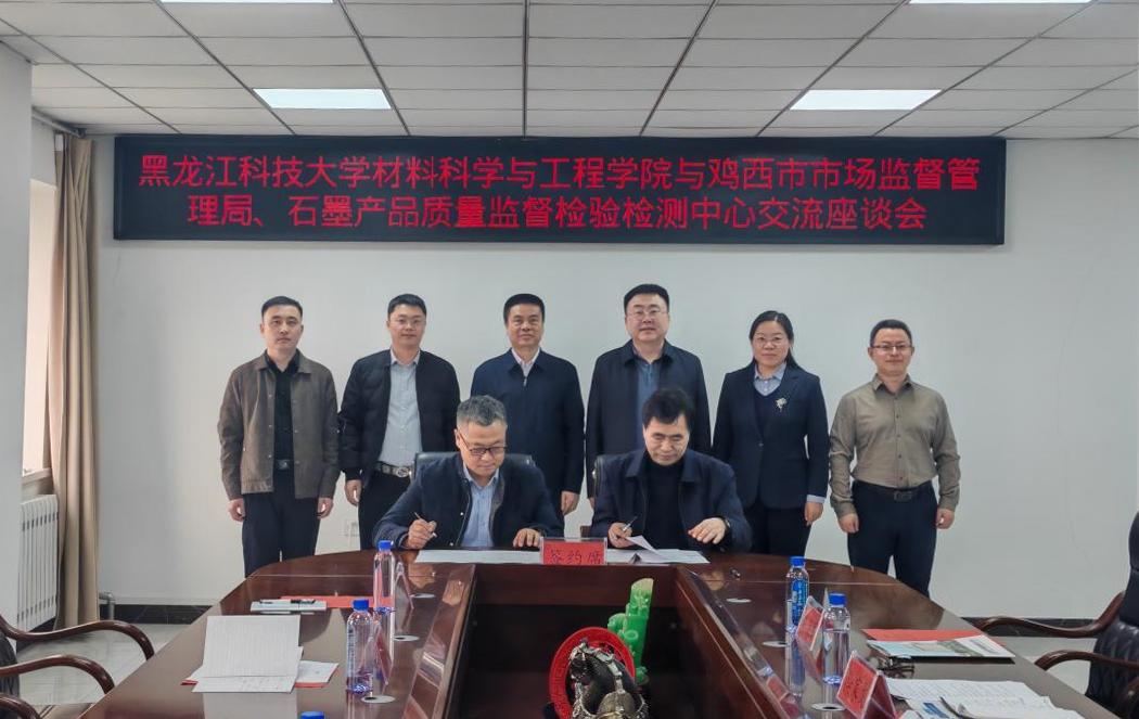 2025年10月,我校与鸡西市签订《矿产资源产业协同创新基地合作协议》,市校战略合作进入全面深化新阶段。2026年1月,双方举行黑龙江科技大学鸡西研究院揭牌仪式,推动市校合作走向实体化运作。本次材料学院与鸡西市石墨质检中心的合作,正是双方深化合作的重要一步。