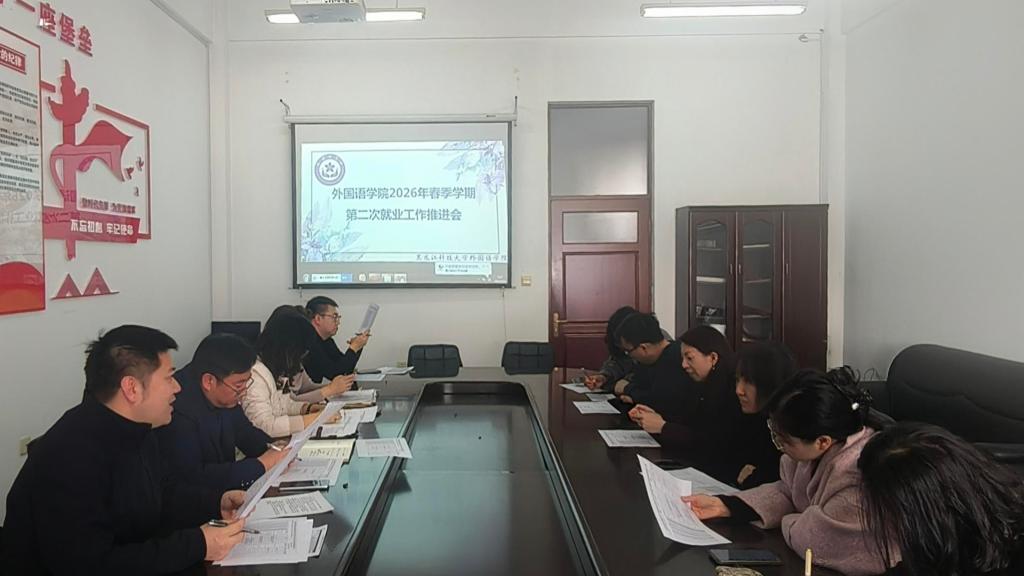 为扎实推进毕业生就业工作,奋力提升就业育人质效,3月27日下午,外国语学院在科厦921会议室,分专业召开2026届毕业生就业工作推进会。学院领导班子成员、各专业教师及全体辅导员参加会议。