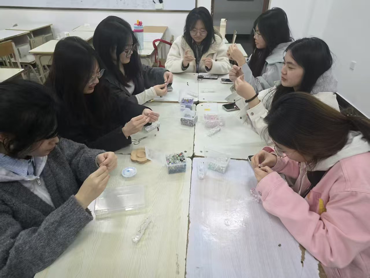巧手编珠悦己,静心疗愈舒心。学院举办“悦纳自我·温柔自愈”正念手串编织活动。同学们围坐协作,在穿珠引线间舒缓学业压力,于重复操作中专注当下、平复焦躁情绪。编织出的手串成为专属“心灵疗愈物”,助力同学们调节心境、悦纳自我,以从容乐观状态投入新学期生活。
